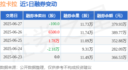本站消息,6月27日,拉卡拉(300773)融资买入6.76亿元,融资偿还8.58亿元,融资净卖出1.82亿元广州华鑫,融资余额15.26亿元,近20个交易日中有14个交易日出现融资净买入。