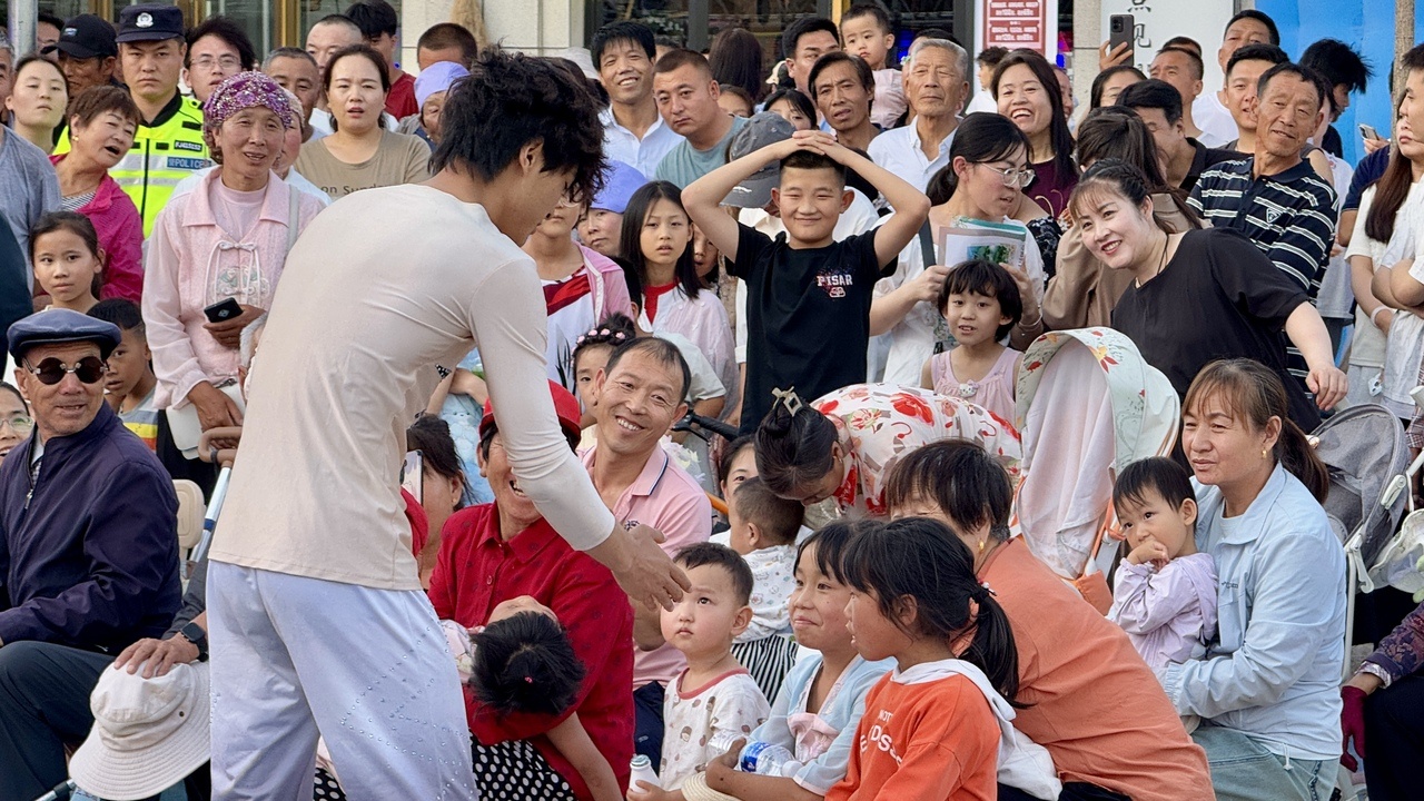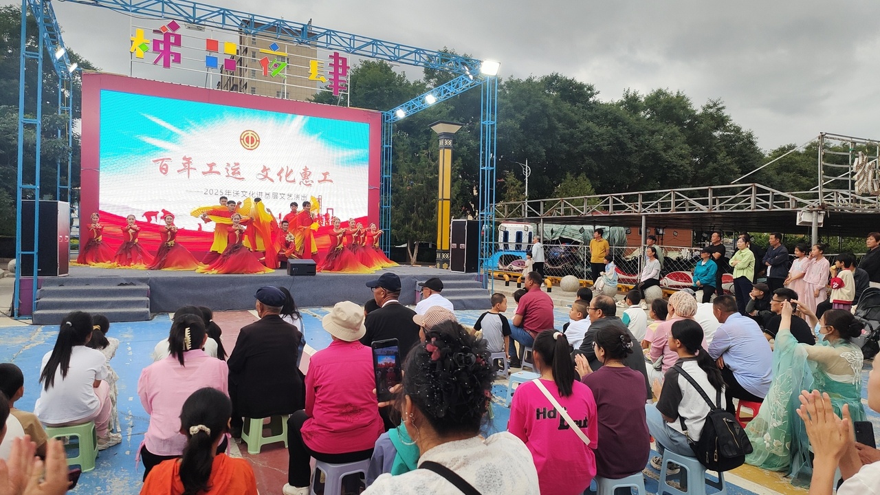 傍晚时分,演出尚未开场,广场上已挤满了自发赶来的职工群众,现场洋溢着热闹欢快的氛围。快递小哥们卸完最后一单货匆匆赶来,车间工人们脱下工装,带着妻儿入座,环卫工人们三五成群地坐在台阶上,手里还握着没来得及放下的扫帚。演员们看着这片由各行各业劳动者汇聚而成的人海,相视一笑。