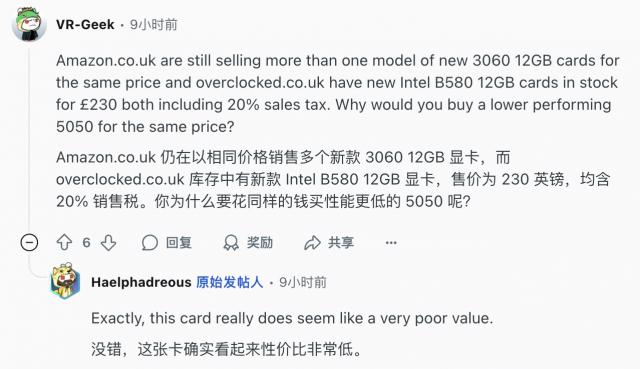 RTX 5050 显卡发布后,网友对于新品的讨论也比较激烈,但似乎大多数人都不太买账。
