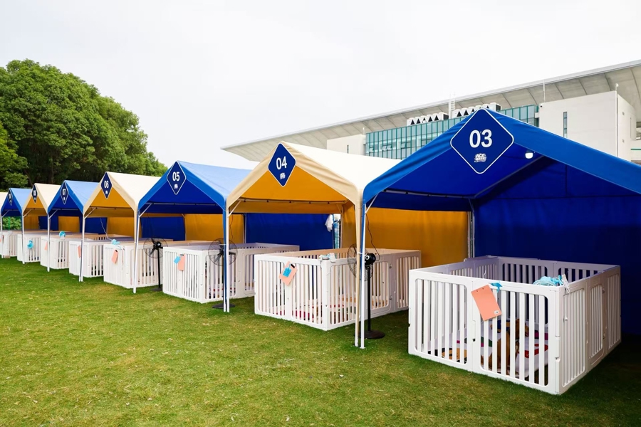 昨日抵达赛场时,张磊没有像往年那样直奔2号门,而是走向6号门的“宠物专属入口”。这样的细致安排正是赛事方平衡宠物主需求与普通观众体验的缩影。除专属入口外,宠物活动只限于萌友天地内,能在3000平方米的固定区域内不需牵引绳自由活动,但严格限制进入赛场、商贸区等核心区域,确保赛事秩序与其他观众的安全。