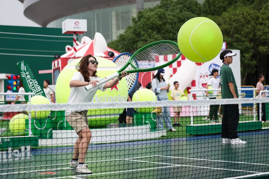 更让不少人动心的是嘉年华打造的沉浸式观赛与消费的融合体验。仙霞网球中心场内的大屏实时同步播出旗忠主赛场的精彩赛况;场馆外的互动体验区人头攒动。据预计,仙霞嘉年华将接待市民近万人,其中近一半是非网球迷,他们因集市、互动游戏而来,最终被网球氛围感染。
