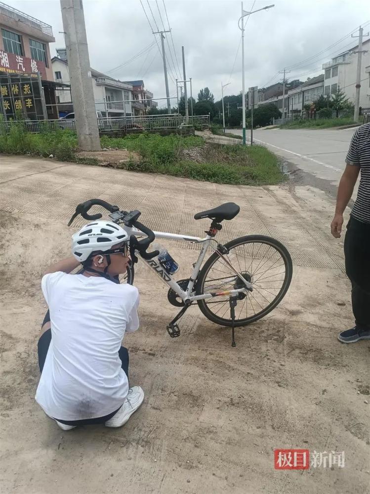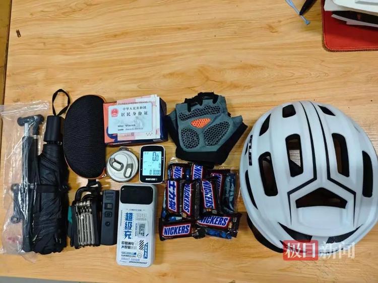 “我出发时还是做了很多准备的,背包里携带了士力架、两瓶水、换洗衣服、雨伞、雨衣、充电宝、夜骑灯等物品。”李志告诉极目新闻记者,他一直喜欢骑行,今年5月份购买了这辆只使用了一个多月的二手自行车后,在闲暇之余,经常和骑行爱好者一起骑行,有时候一天骑行30多公里,有时候骑行100多公里。