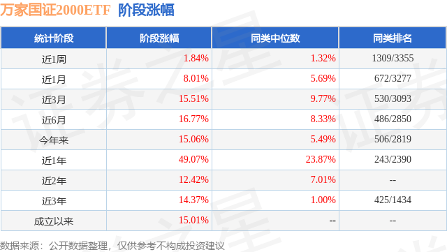 本站消息,日前万家国证2000ETF基金公布二季报,2025年二季度最新规模8.09亿元星星配资,季度净值涨幅为3.75%。